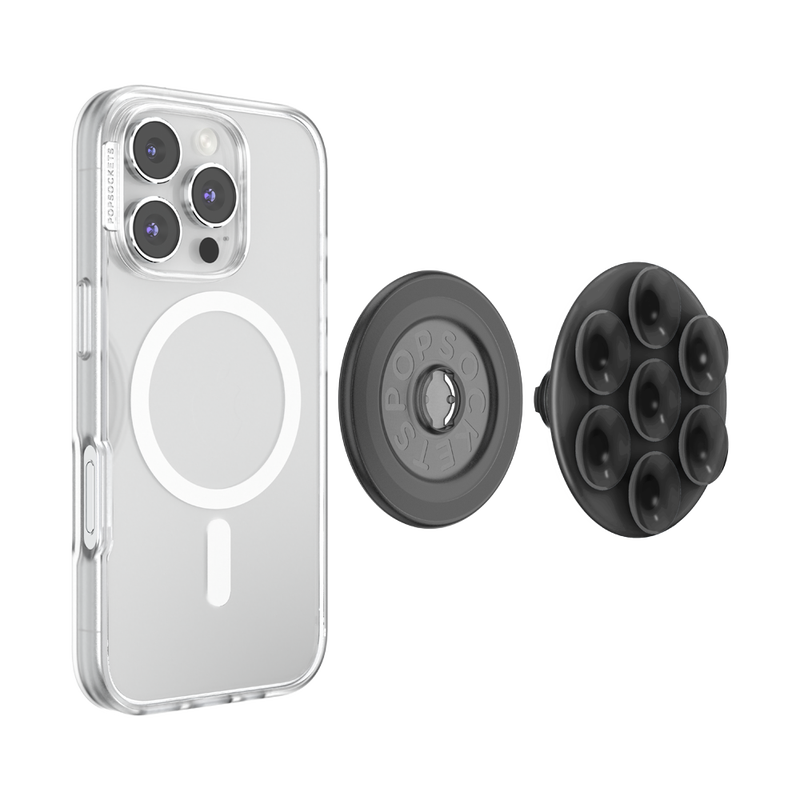 It comes with adapter ring to make any case MagSafe compatible, Introducing the PopSockets Suck-Up Grip: a powerful new product that combines our signature grip and stand with strong suction to securely attach to smooth, flat surfaces.