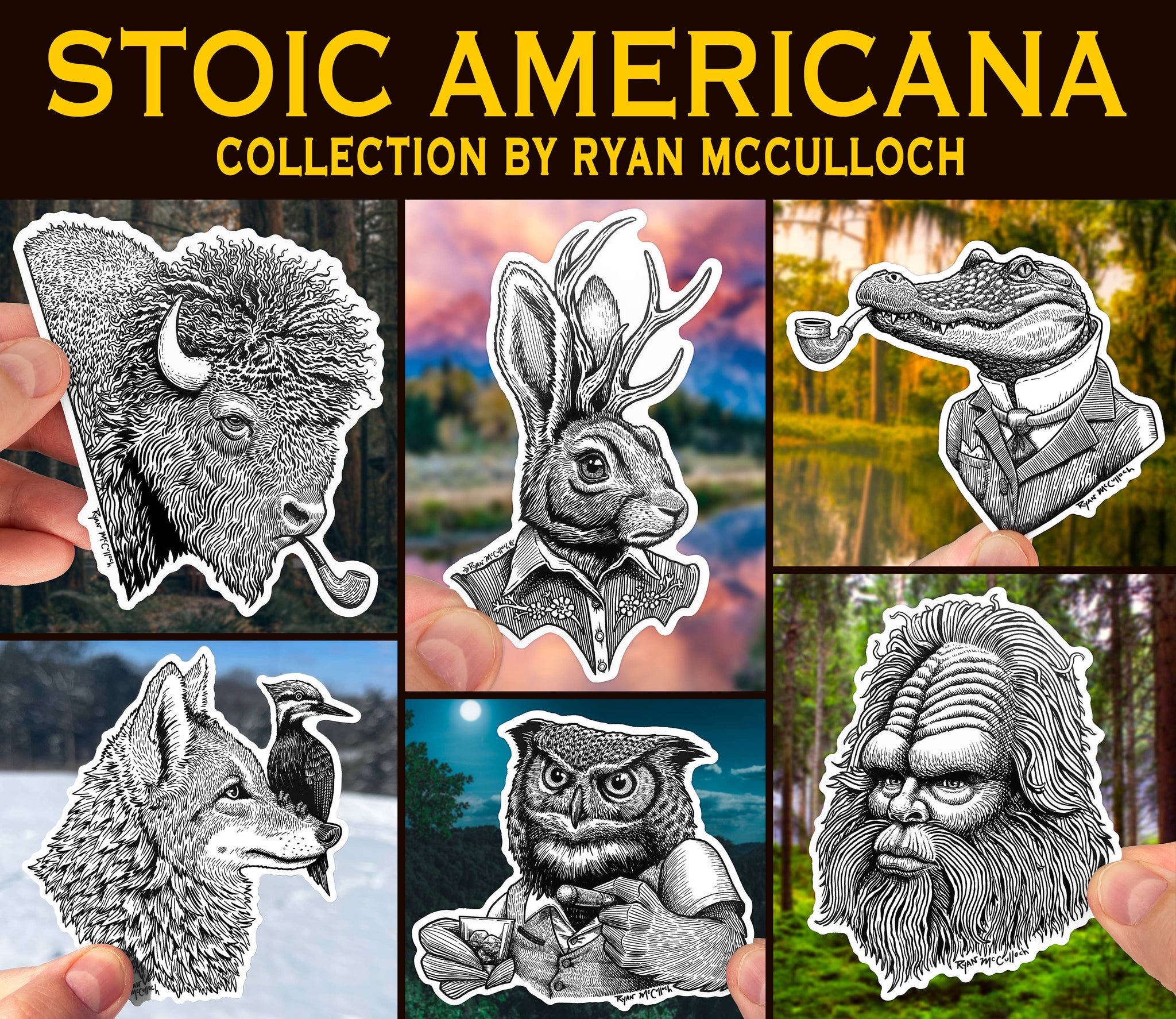 Entry rom my "Stoic Americana" series. This new collection features North American wildlife (and mythical creatures) in an elegant pen & ink style. While these illustration have a more classical, sophisticated vibe, they do retain some of the lighthearted humor of my other works!